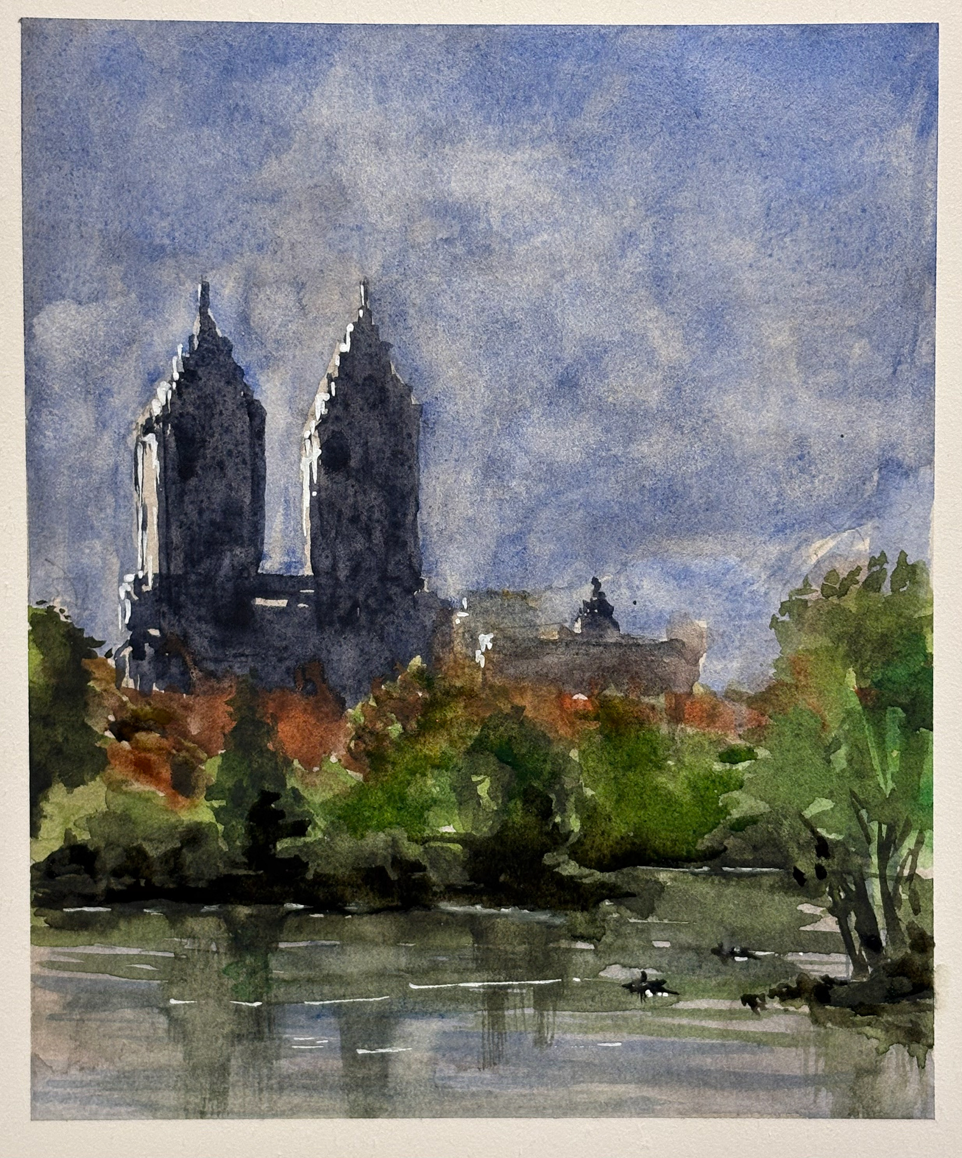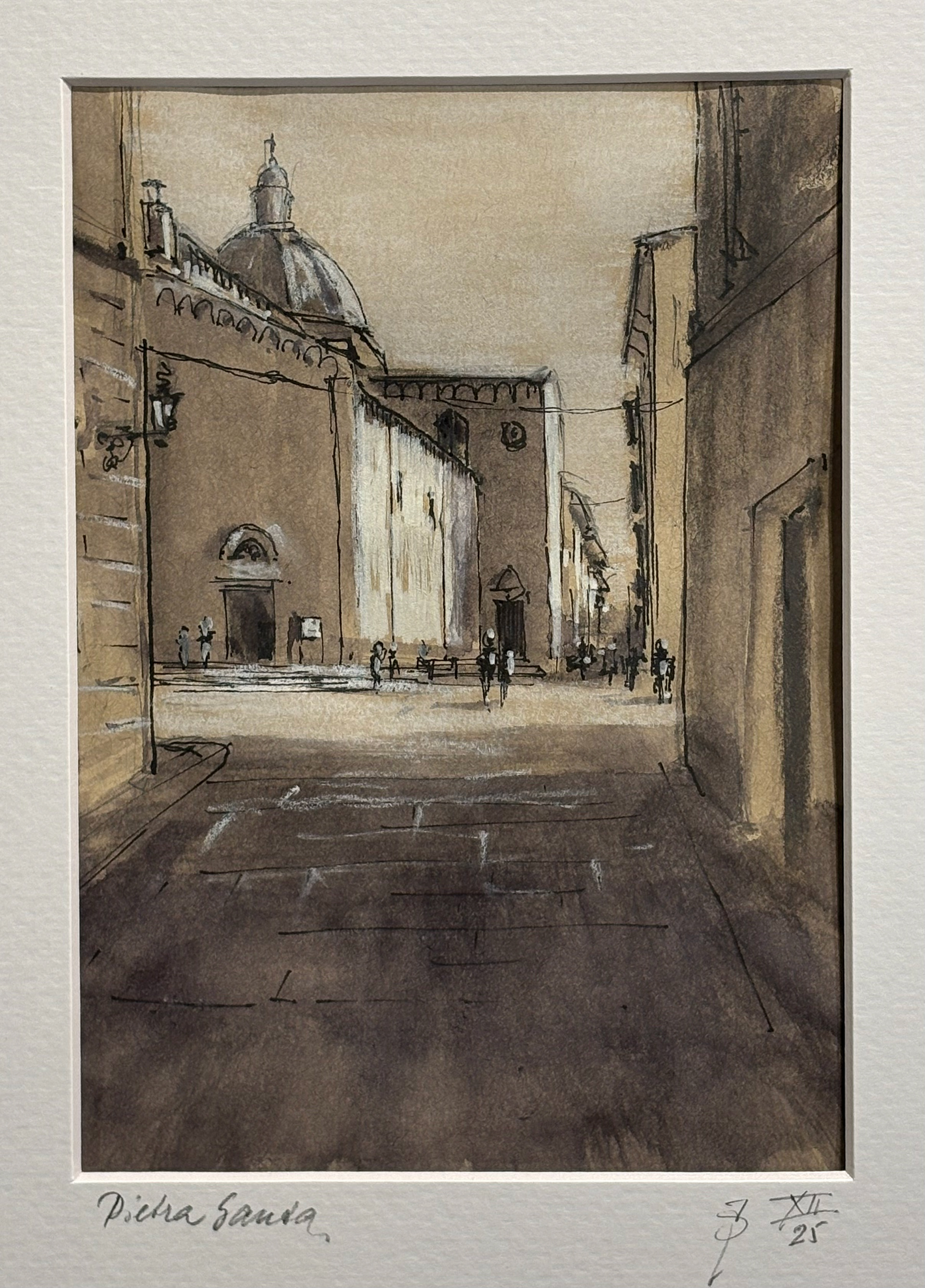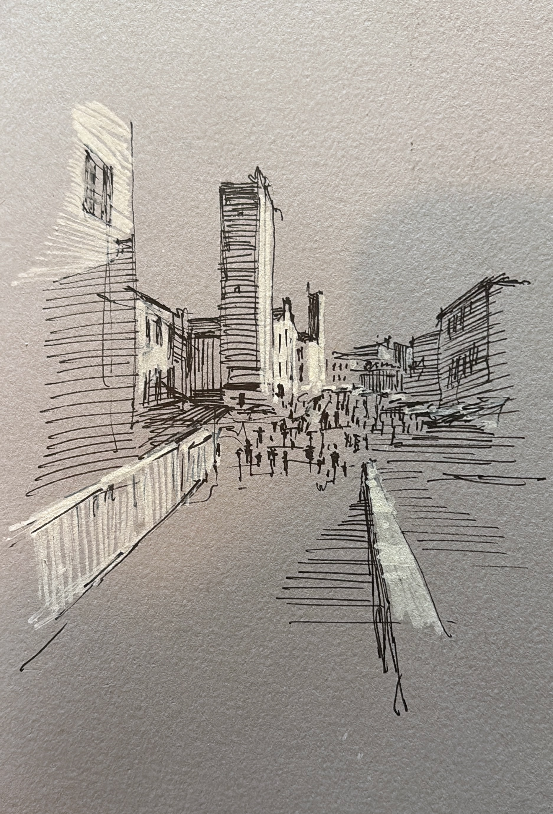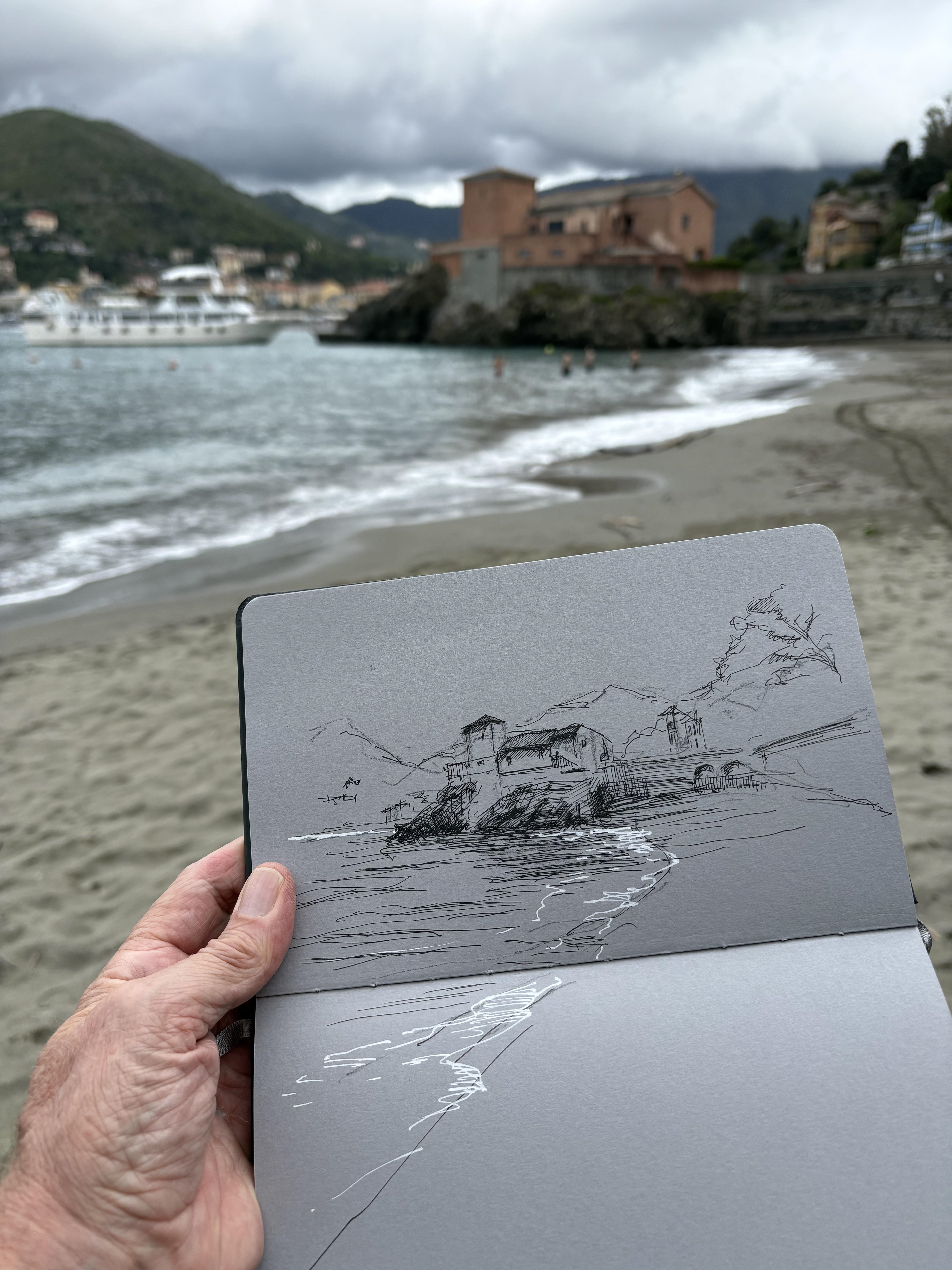 Ik maakte een schets, wat fotos en later thuis bovenstaande pasteltekening.