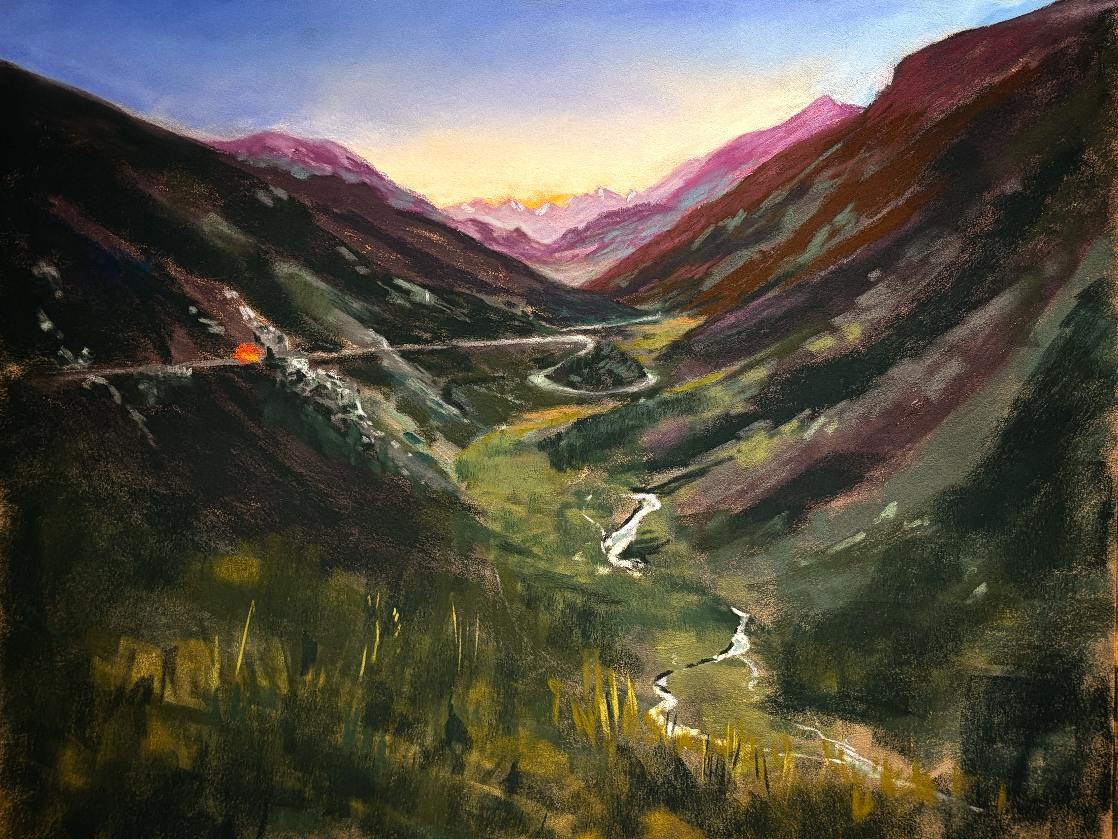 In plaats van door de tunnel zijn we via de pas gereden. Daar hebben we geslapen met 's ochtends vroeg dit uitzicht!